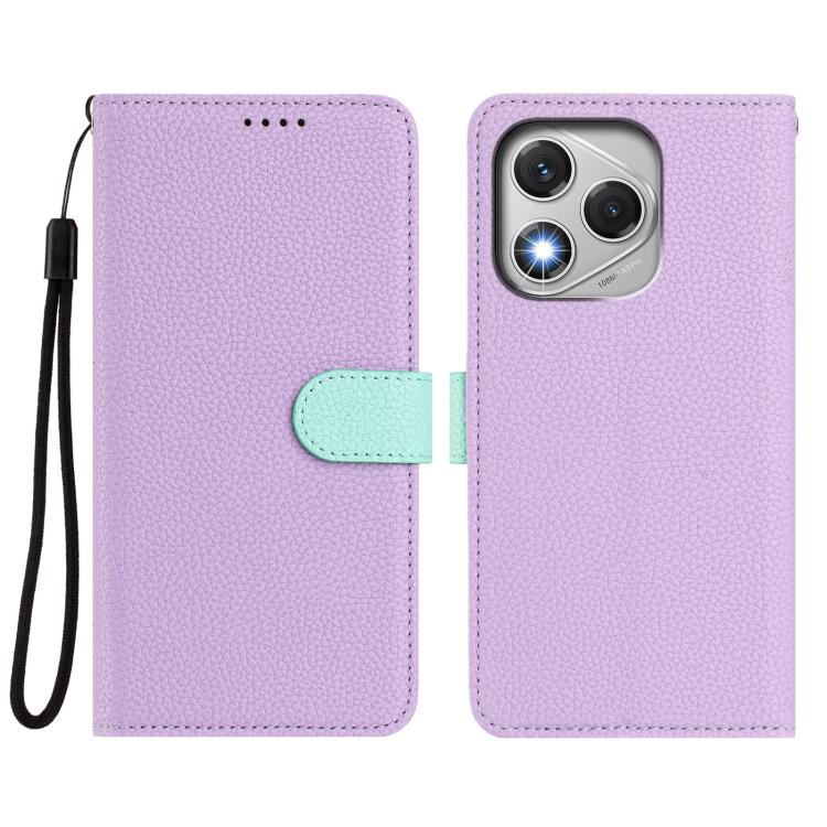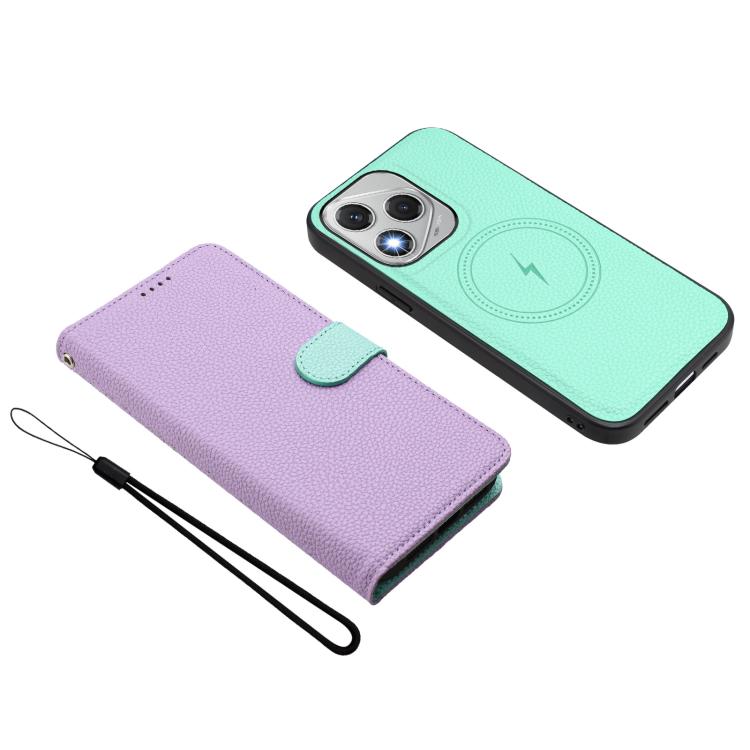 For Honor 400 Lite Global Detachable Litchi Texture Magnetic Vegan Leather Phone Case(Purple+Mint Green)