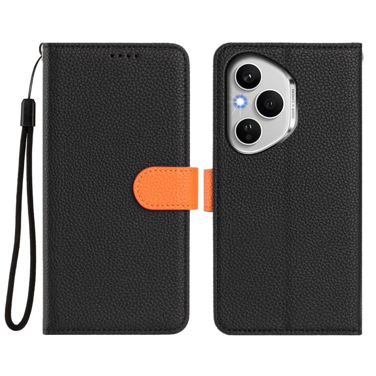 For Honor 400 Pro Global 160.8mm Detachable Litchi Texture Magnetic Vegan Leather Phone Case(Black+Orange)