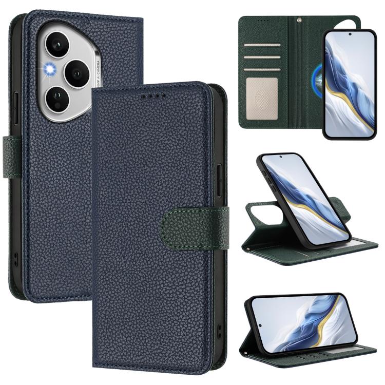 For Honor 400 Pro Global 160.8mm Detachable Litchi Texture Magnetic Vegan Leather Phone Case(Dark Blue+Dark Green)