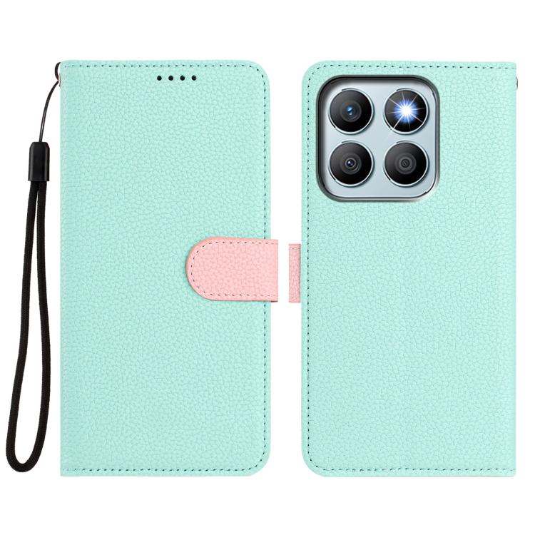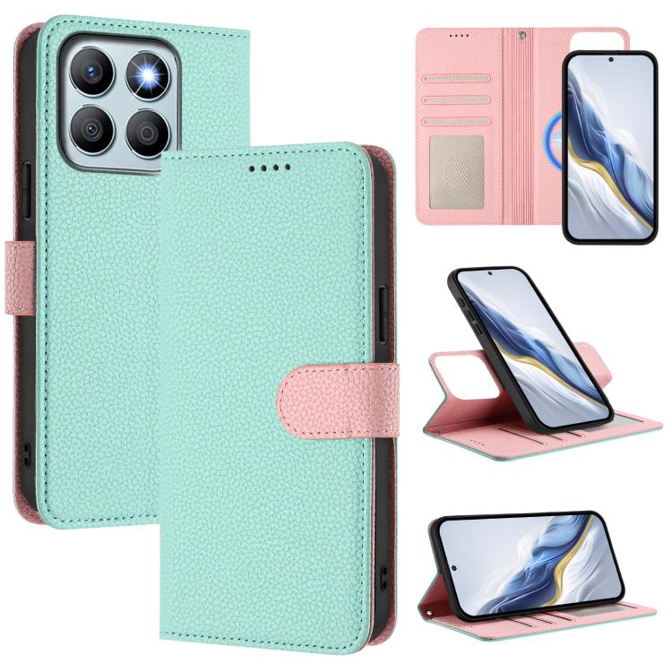 For Honor X6b 4G Detachable Litchi Texture Magnetic Vegan Leather Phone Case(Mint Green+Pink)