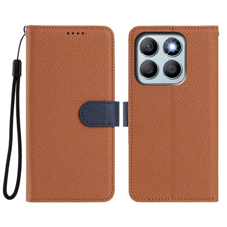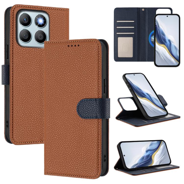 For Honor X7b / Play 8T Detachable Litchi Texture Magnetic Vegan Leather Phone Case(Brown+Dark Blue)