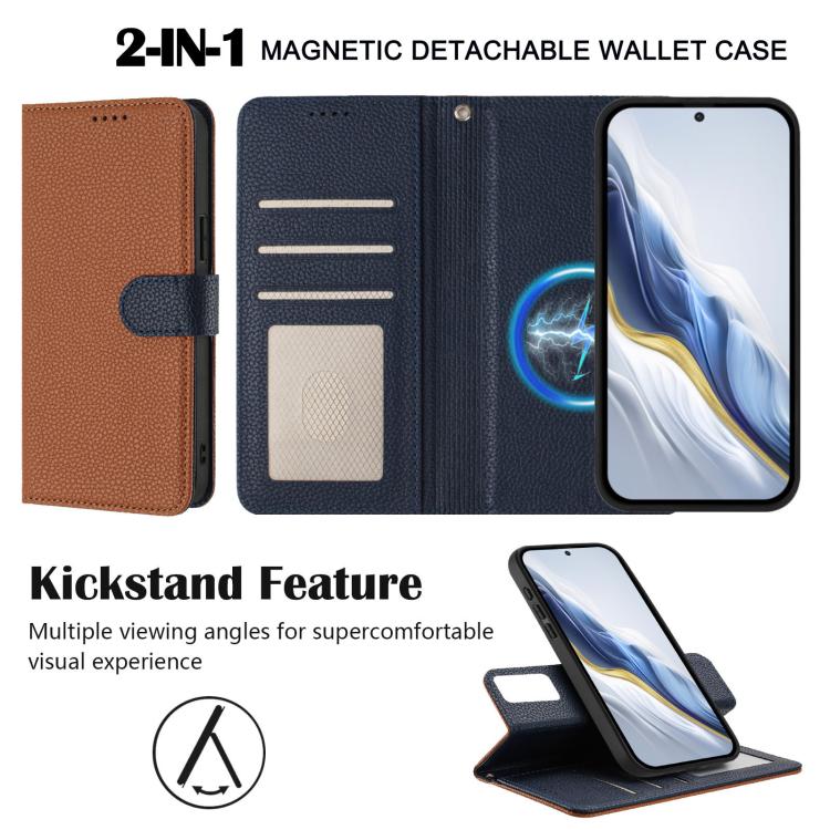 For Honor X8b Detachable Litchi Texture Magnetic Vegan Leather Phone Case(Brown+Dark Blue)
