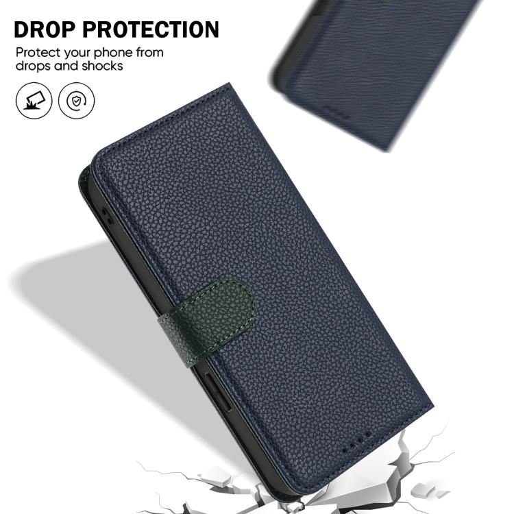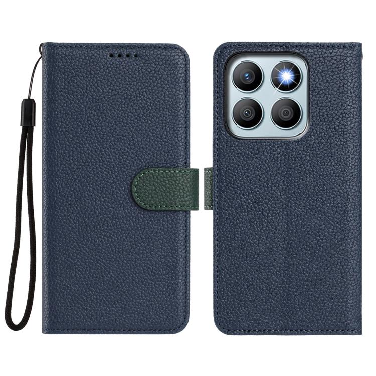 For Honor X8b Detachable Litchi Texture Magnetic Vegan Leather Phone Case(Dark Blue+Dark Green)