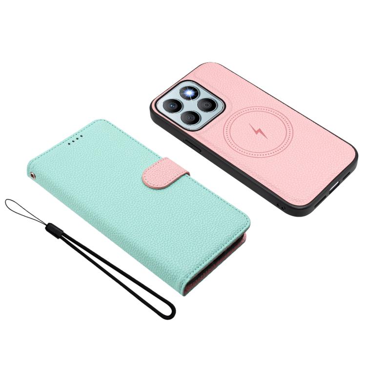 For Honor X8b Detachable Litchi Texture Magnetic Vegan Leather Phone Case(Mint Green+Pink)