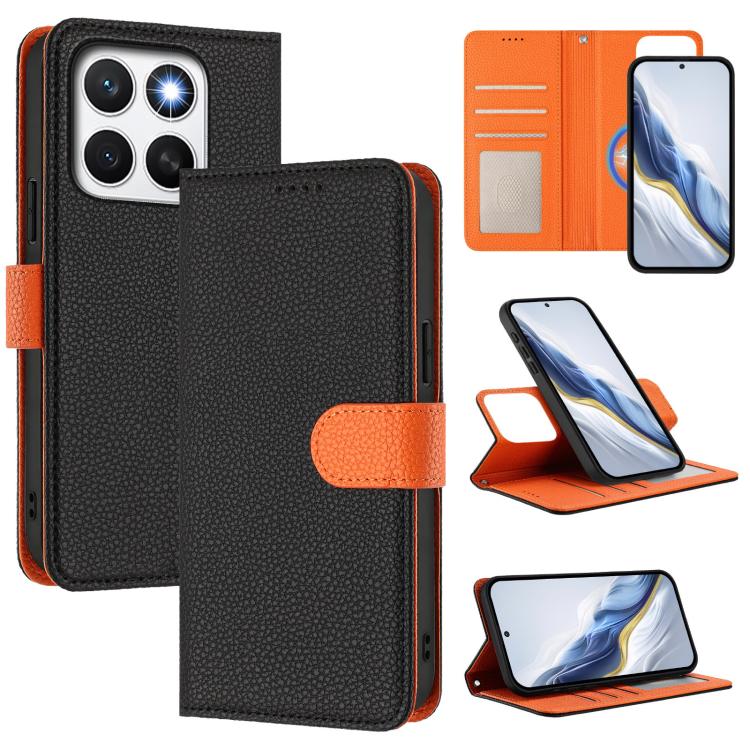 For Honor X8c 4G Detachable Litchi Texture Magnetic Vegan Leather Phone Case(Black+Orange)