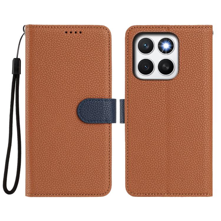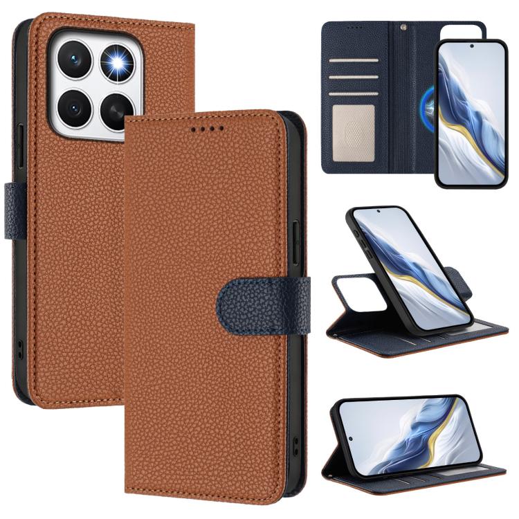 For Honor X8c 4G Detachable Litchi Texture Magnetic Vegan Leather Phone Case(Brown+Dark Blue)