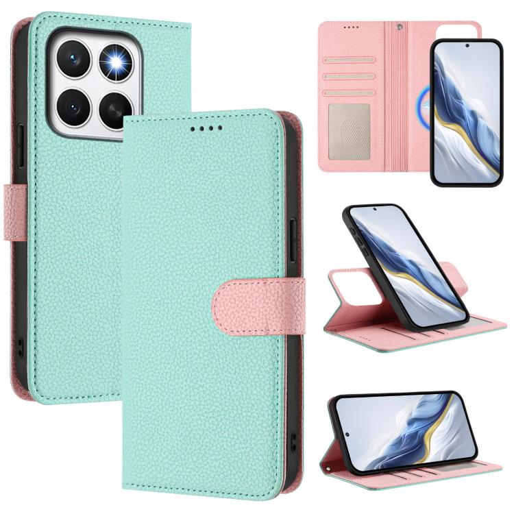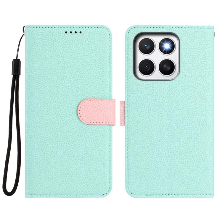 For Honor X8c 4G Detachable Litchi Texture Magnetic Vegan Leather Phone Case(Mint Green+Pink)