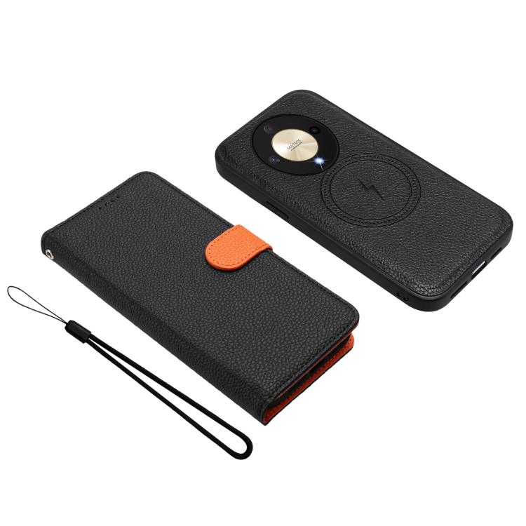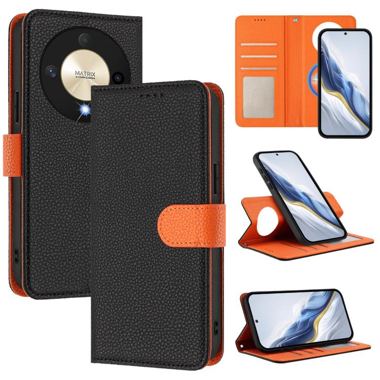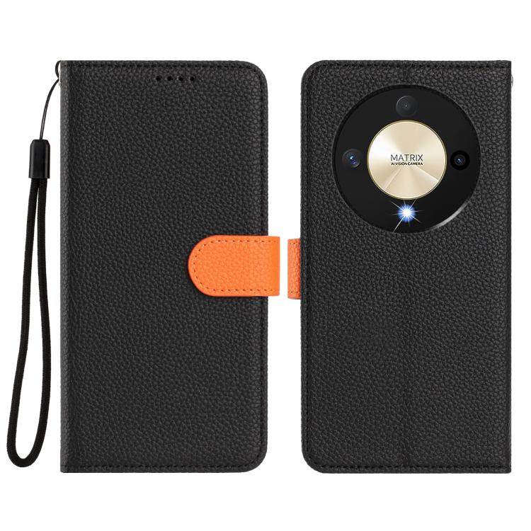 For Honor X9b / Magic6 Lite Detachable Litchi Texture Magnetic Vegan Leather Phone Case(Black+Orange)