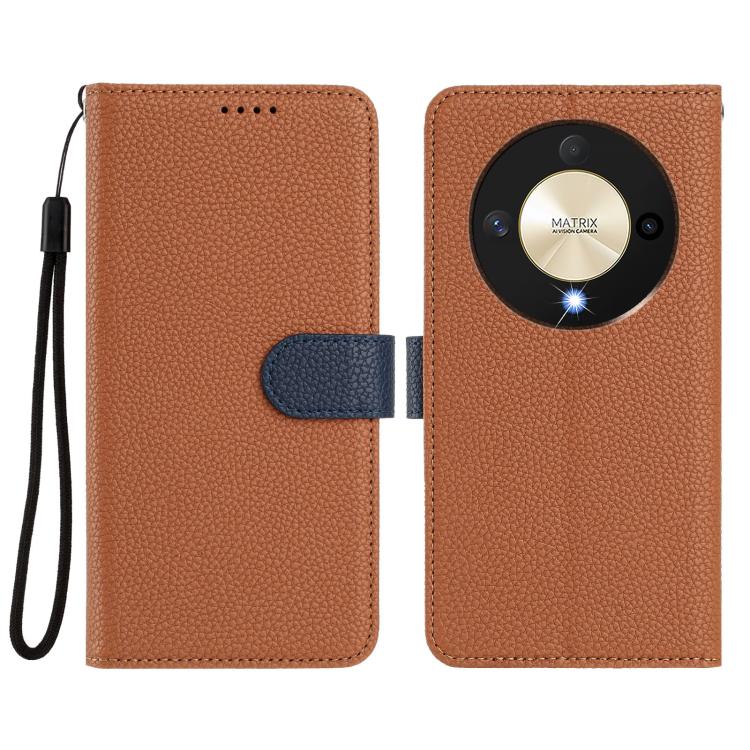For Honor X9b / Magic6 Lite Detachable Litchi Texture Magnetic Vegan Leather Phone Case(Brown+Dark Blue)