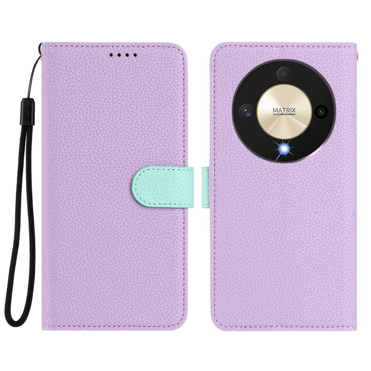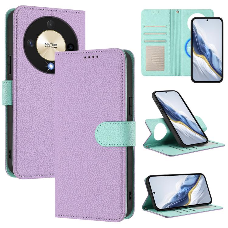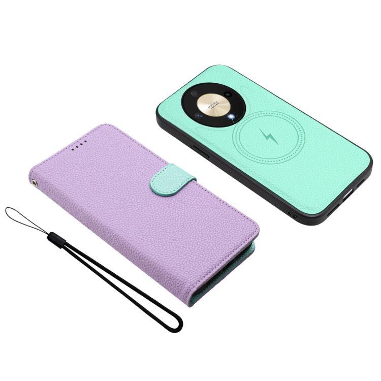 For Honor X9b / Magic6 Lite Detachable Litchi Texture Magnetic Vegan Leather Phone Case(Purple+Mint Green)