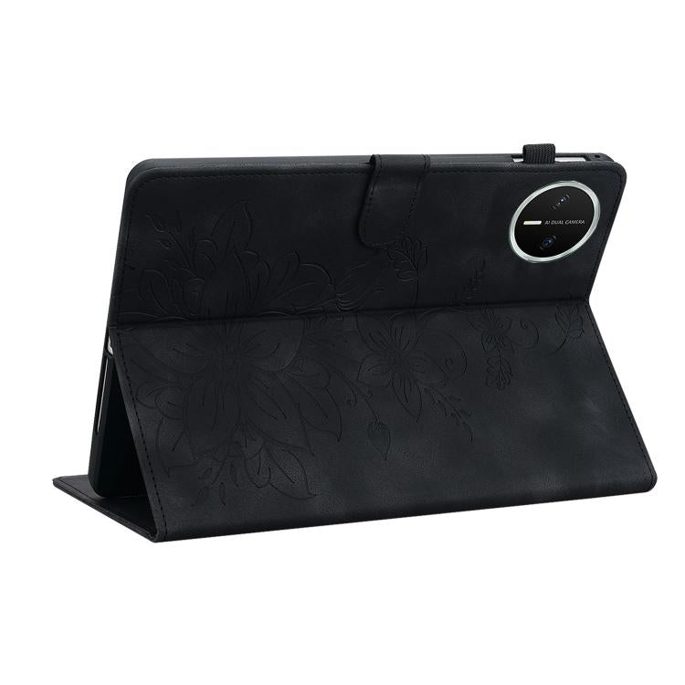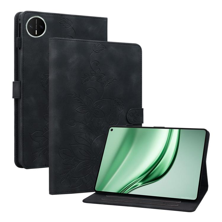 For Huawei MatePad Mini 2025 Lily Embossed Leather Tablet Case(Black)
