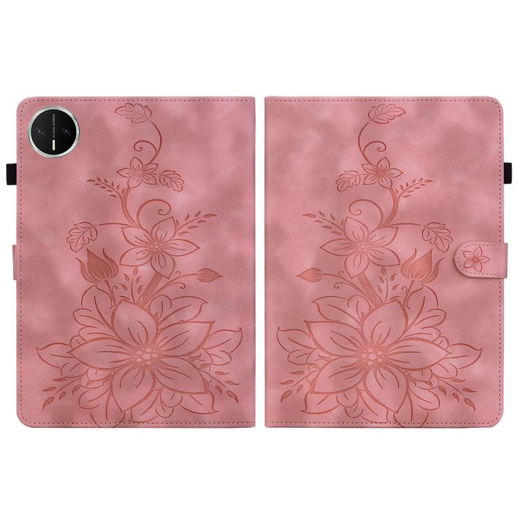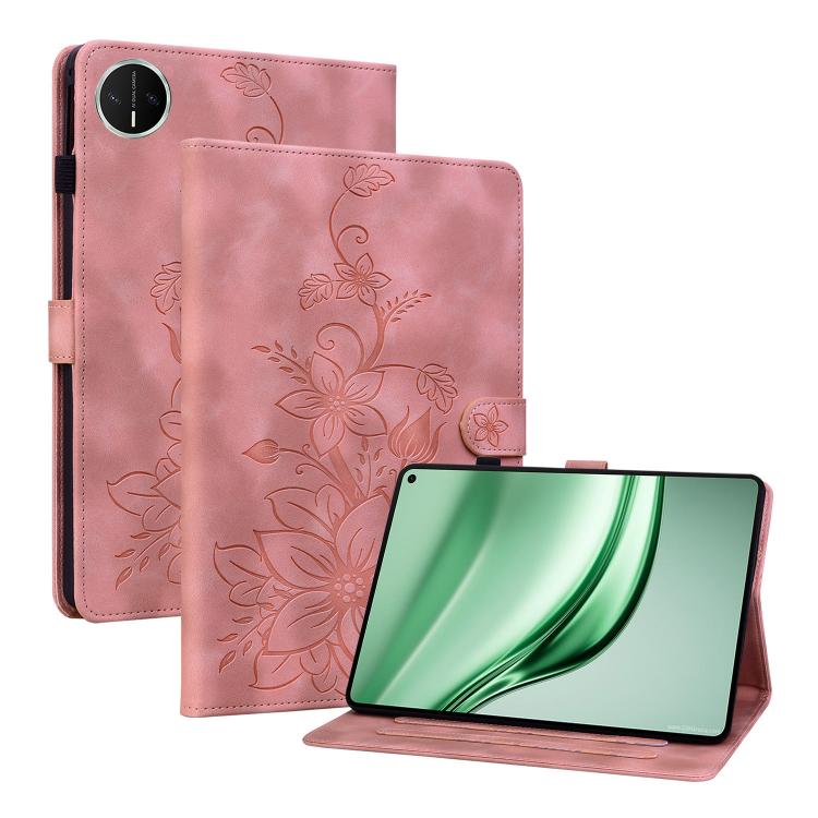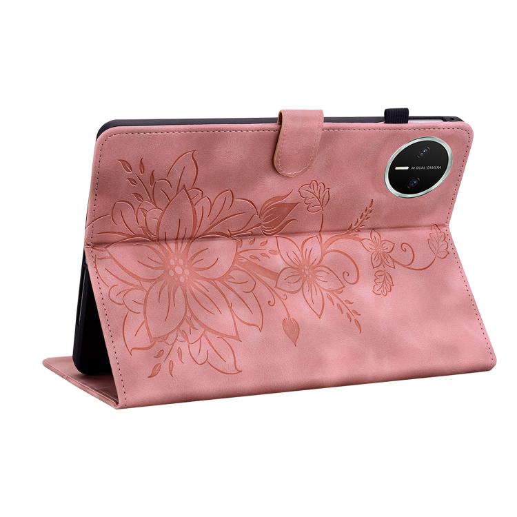 For Huawei MatePad Mini 2025 Lily Embossed Leather Tablet Case(Pink)