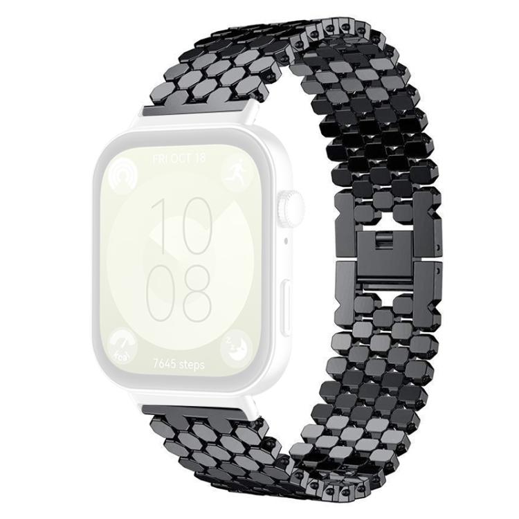 For Huawei Watch Fit4 / Fit4 Pro / Fit3 xDfind Fish Scale Texture Metal Watch Band(Black)