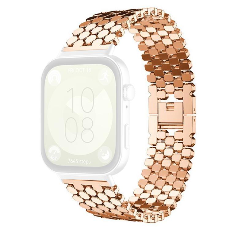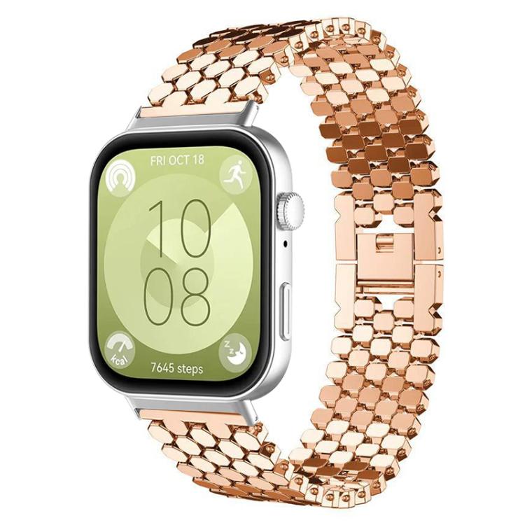 For Huawei Watch Fit4 / Fit4 Pro / Fit3 xDfind Fish Scale Texture Metal Watch Band(Rose Gold)