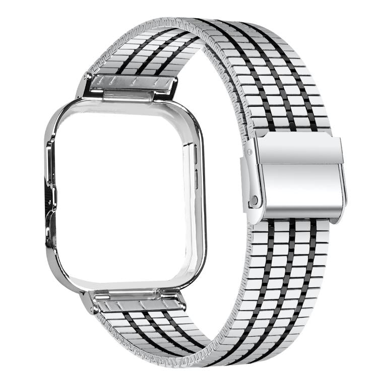 For Huawei Watch Fit4 Pro / Fit4 / Fit3 Metal Frame Integrated Seven Beads Buckle Stainless Steel Watch Band(Silver Black)