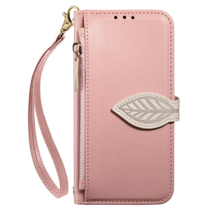 For Infinix Hot 50 Pro 4G Leaf Buckle Zipper Wallet Leather Phone Case with Strap(Pink)