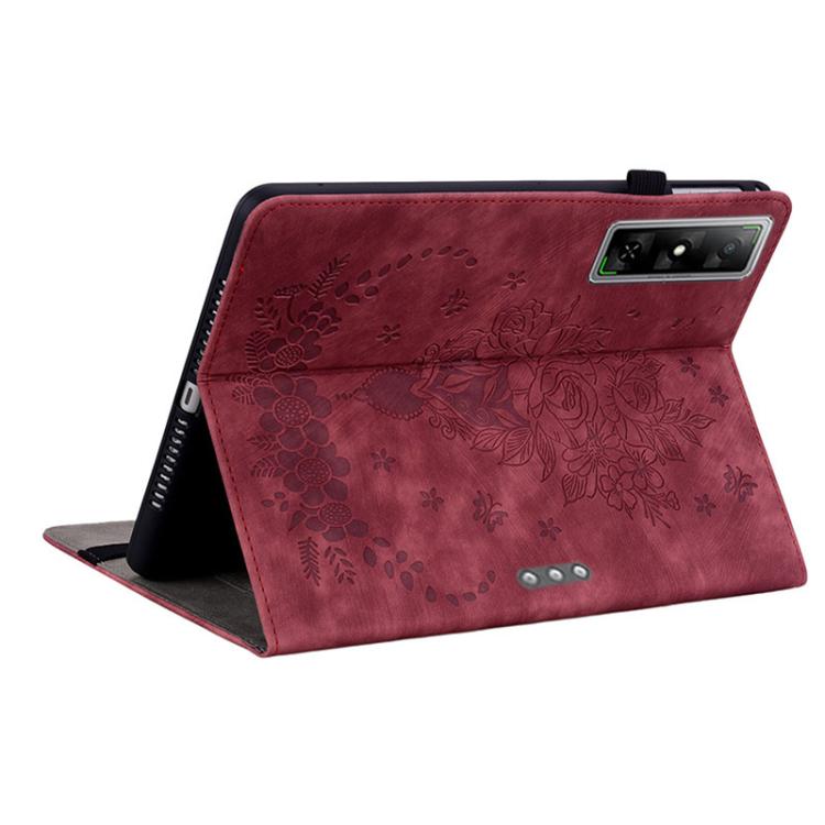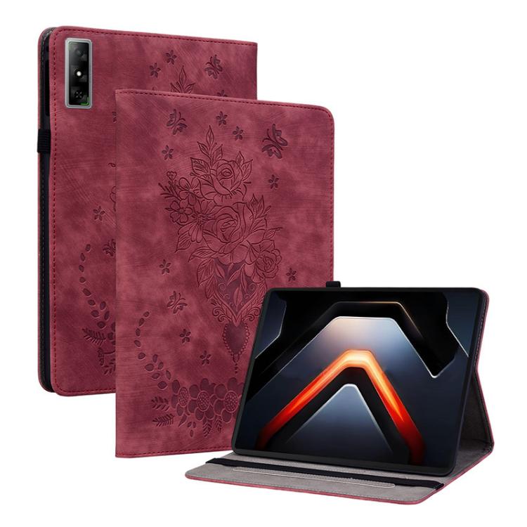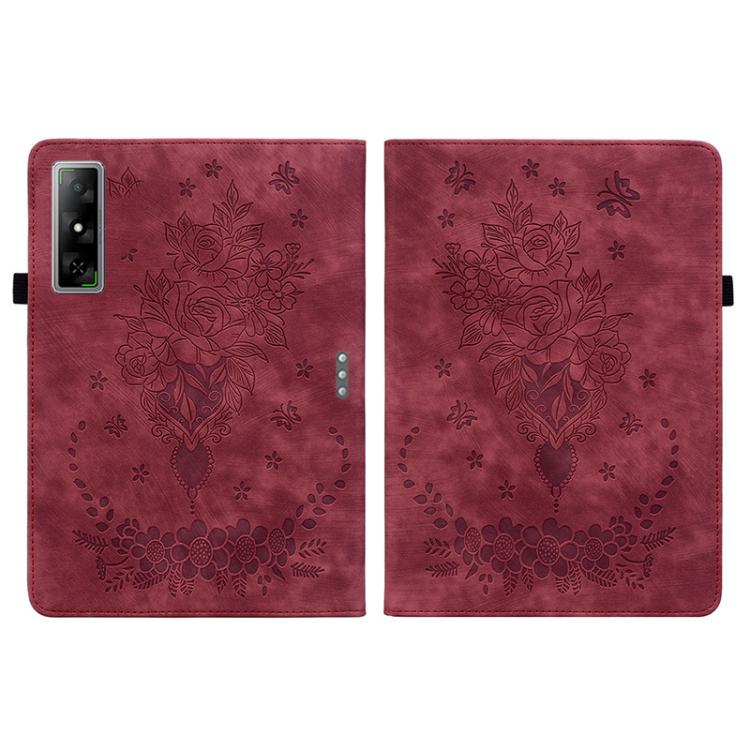For Infinix Xpad GT Butterfly Rose Embossed Leather Tablet Case(Red)