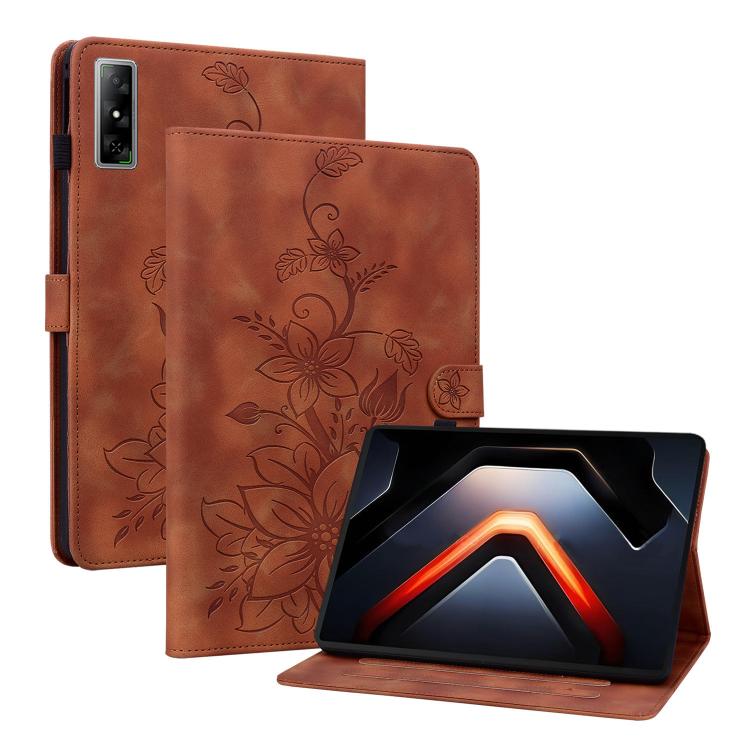 For Infinix Xpad GT Lily Embossed Leather Tablet Case(Brown)