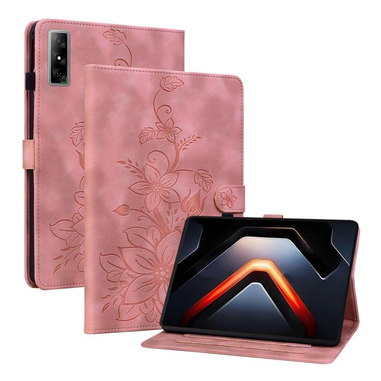 For Infinix Xpad GT Lily Embossed Leather Tablet Case(Pink)
