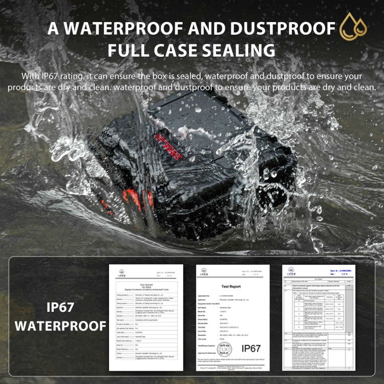 3. Premium Materials: The exterior is made from high-quality ABS material, which is wear-resistant, impact-resistant, and crush-resistant. The valve design ensures excellent sealing, offering IP67 waterproof and dustproof protection to keep your products dry and clean. The interior lining is made from custom EVA material, and the top lid features an elastic foam pad for added protection, ensuring full protection for your camera and related accessories.