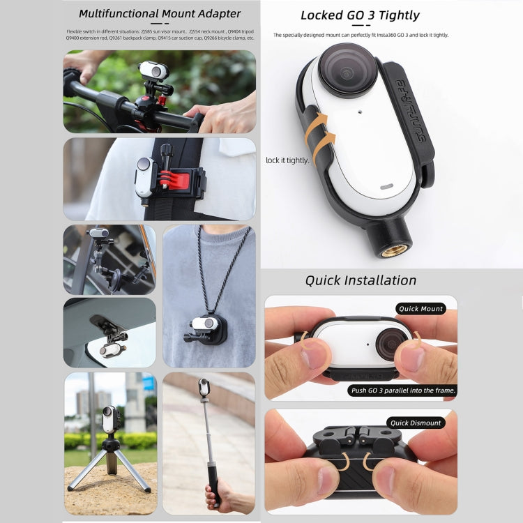 2. Expansion of infinite possibilities. It can be used with Sunnylife ZJ585 sun visor bracket, ZJ554 magnetic neck hanger bracket, Q9404 tripod, Q9400 extension rod, Q9261 backpack clip, Q9415 car suction cup, Q9266 bicycle clip, etc.