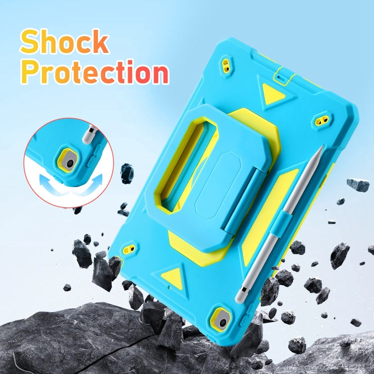 For iPad 10.2 2021 / 2020 / 2019 Legend Grip Holder Silicone Hybrid PC Tablet Case with Strap(Blue Fluorescent Yellow)
