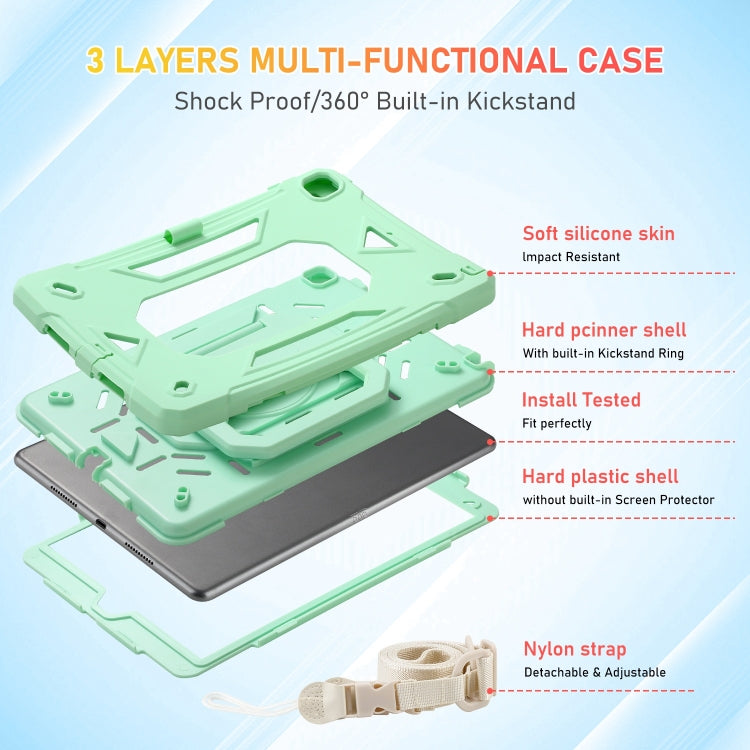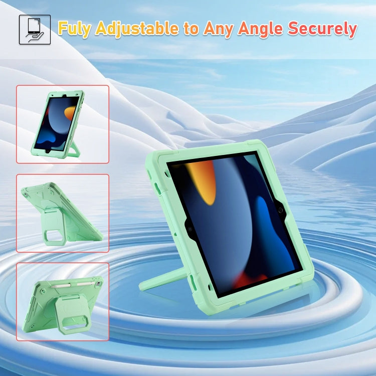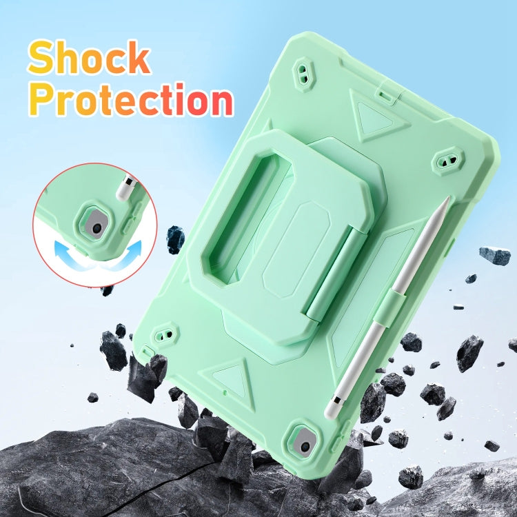 For iPad 10.2 2021 / 2020 / 2019 Legend Grip Holder Silicone Hybrid PC Tablet Case with Strap(Mint Green)