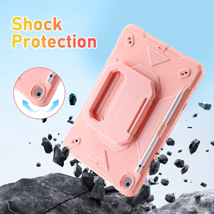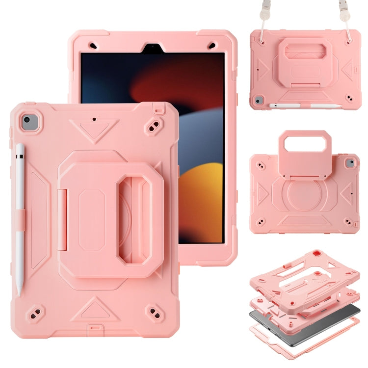 For iPad 10.2 2021 / 2020 / 2019 Legend Grip Holder Silicone Hybrid PC Tablet Case with Strap(Pink)