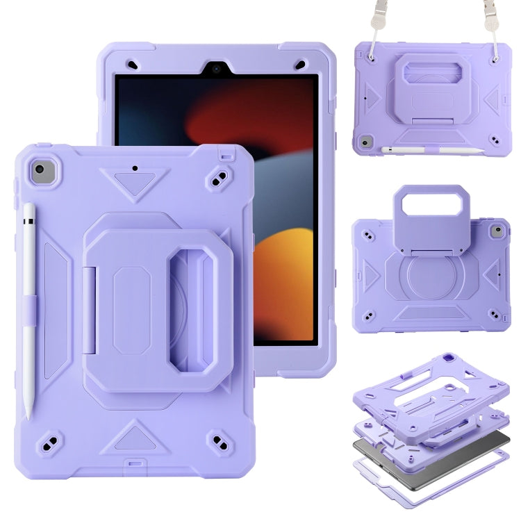 For iPad 10.2 2021 / 2020 / 2019 Legend Grip Holder Silicone Hybrid PC Tablet Case with Strap(Purple)