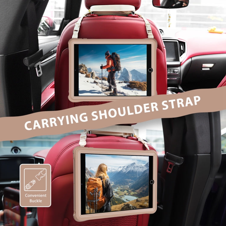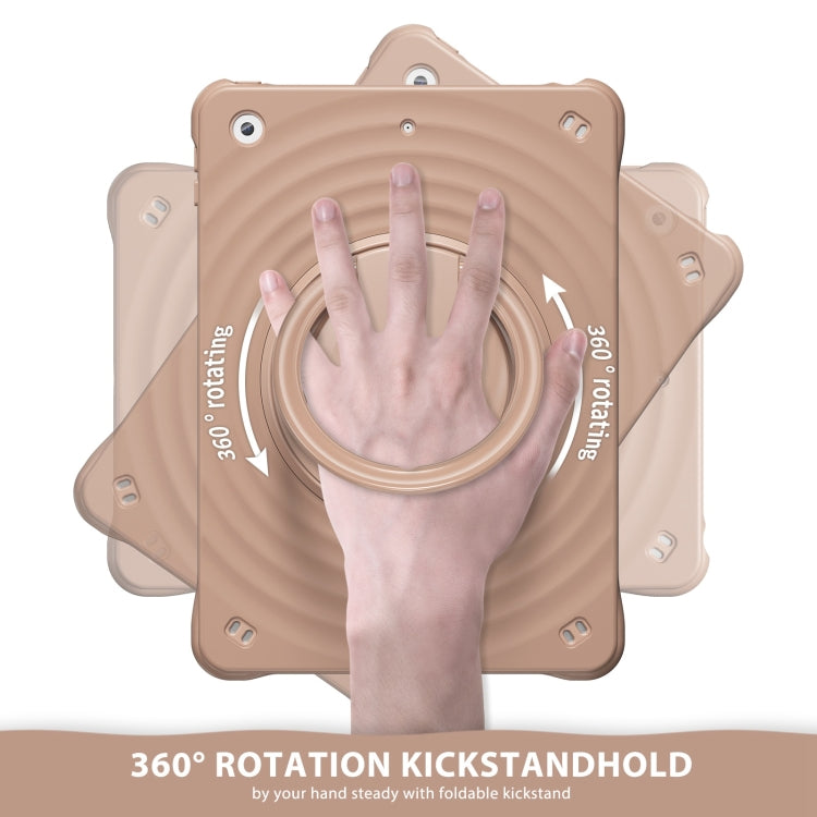 For iPad 10.2 2021 / 2020 / 2019 Rotation Handle Holder Silicone Hybrid PC Tablet Case(Light Coffee)