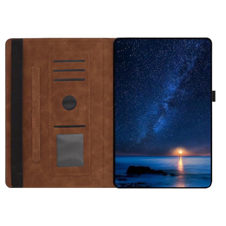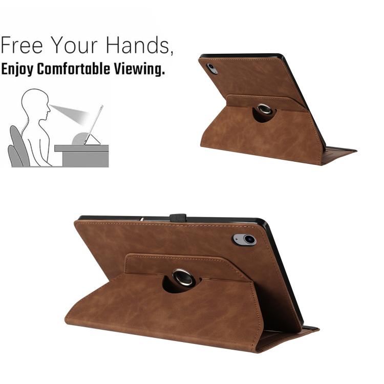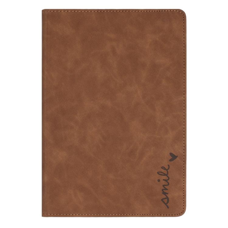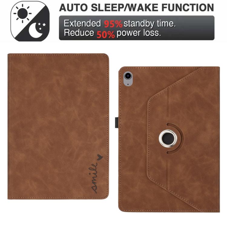 For iPad 2022 / 2025 Smile Embossed Rotation Holder Leather Smart Tablet Case(Brown)