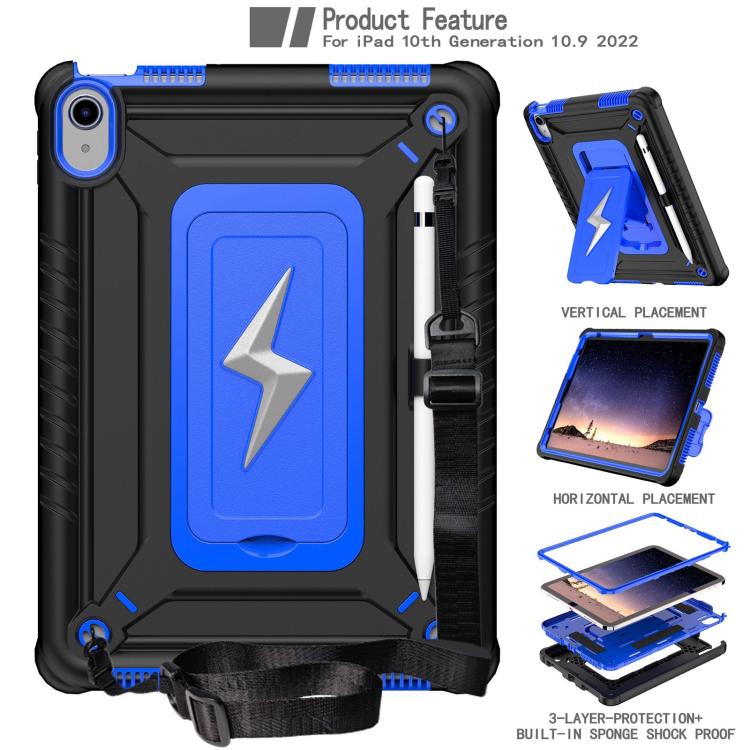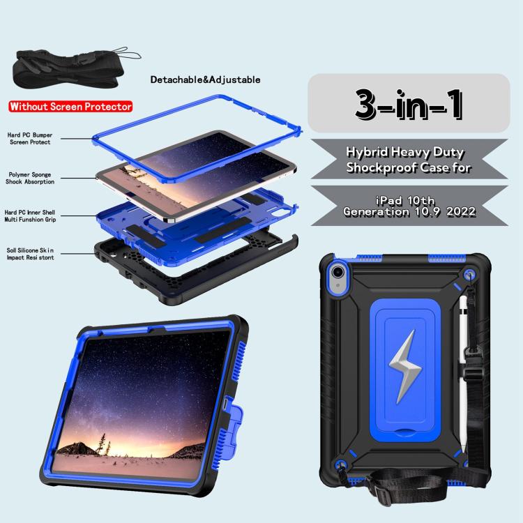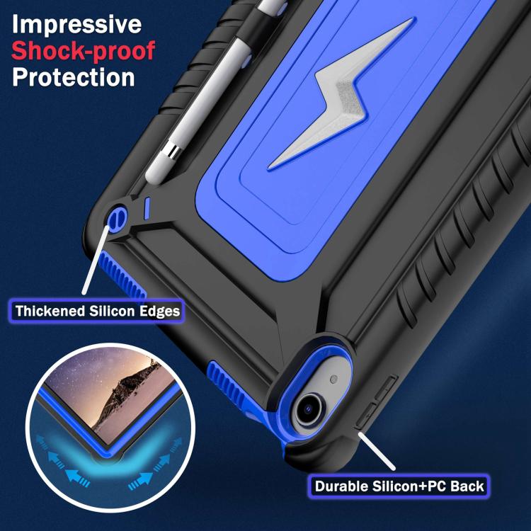 For iPad 2025 / 2022 Armor Bolt Shape Holder Silicone Hybrid PC Tablet Case(Black Blue)