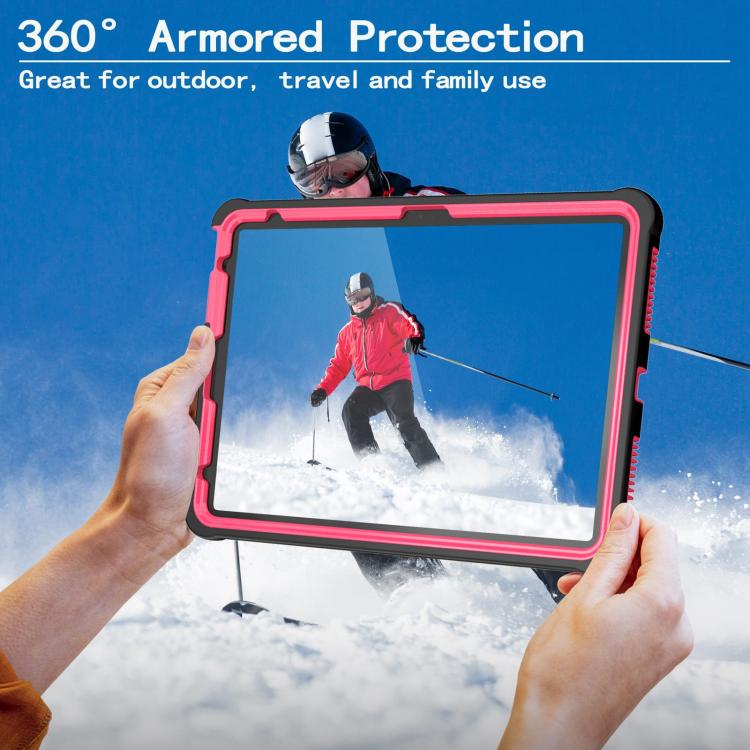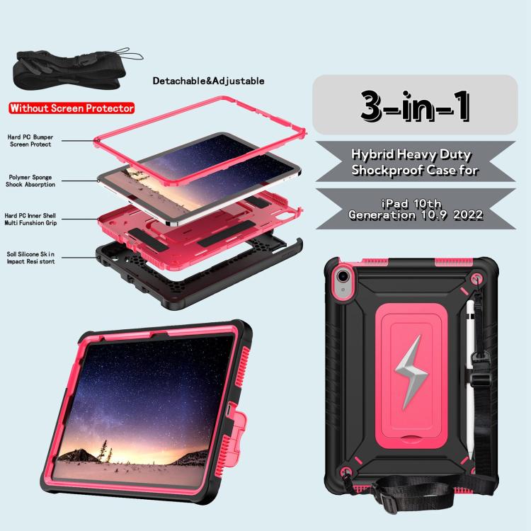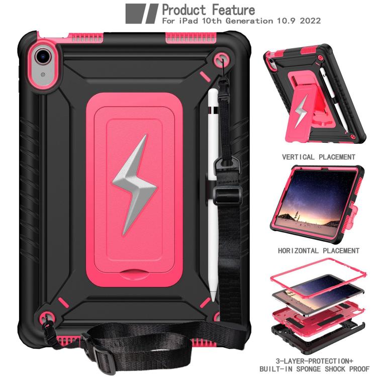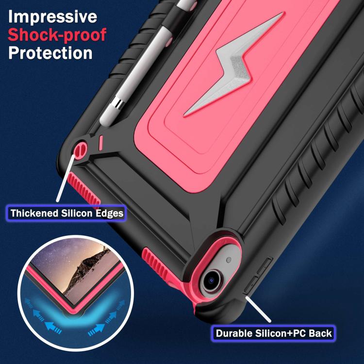 For iPad 2025 / 2022 Armor Bolt Shape Holder Silicone Hybrid PC Tablet Case(Black Rose Red)