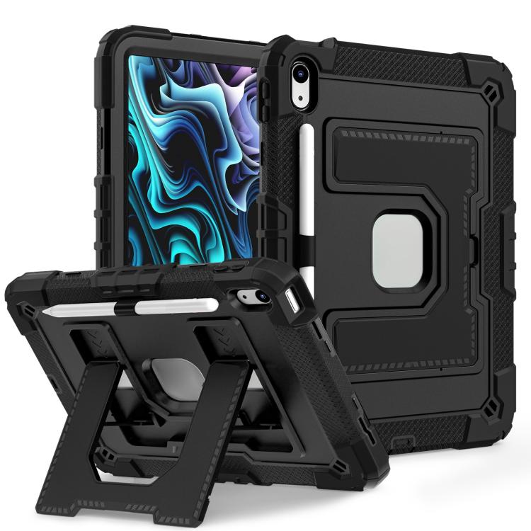 For iPad 2025 / 2022 Big Holder Silicone Hydric PC Tablet Case with Shoulder Strap(Black)