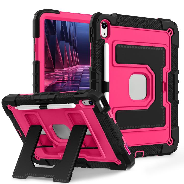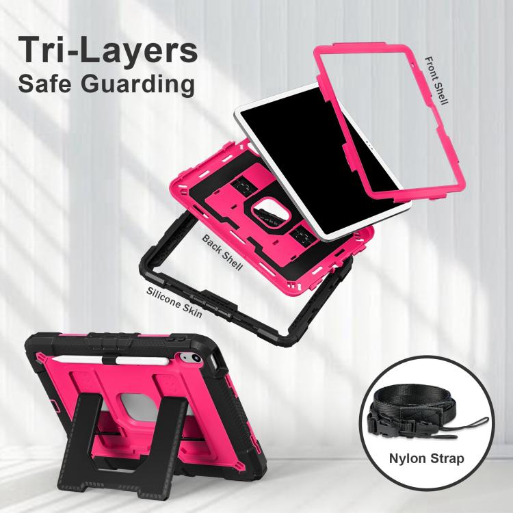 For iPad 2025 / 2022 Big Holder Silicone Hydric PC Tablet Case with Shoulder Strap(Black Rose Red)