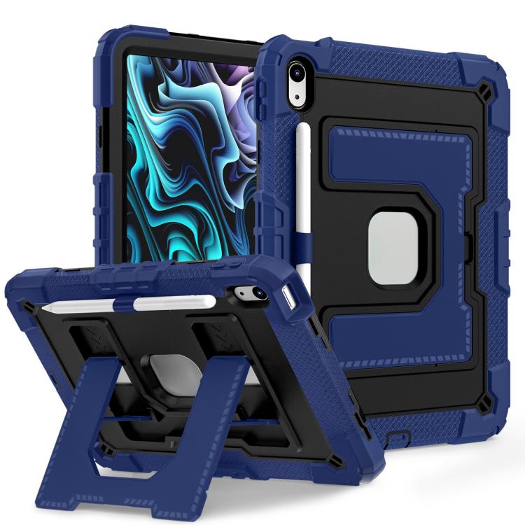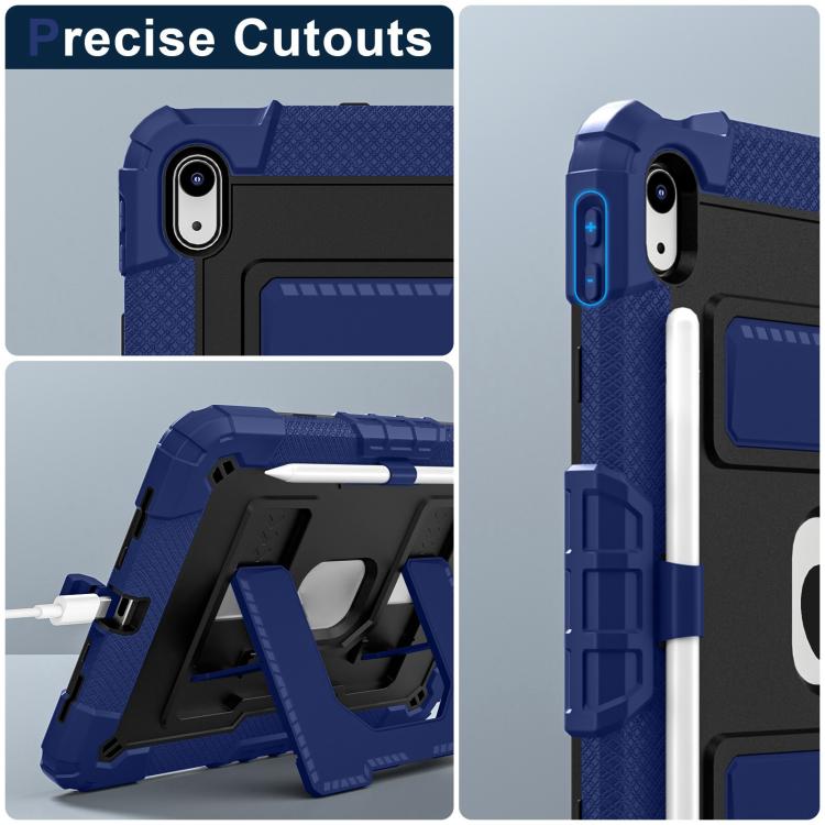 For iPad 2025 / 2022 Big Holder Silicone Hydric PC Tablet Case with Shoulder Strap(Navy Black)