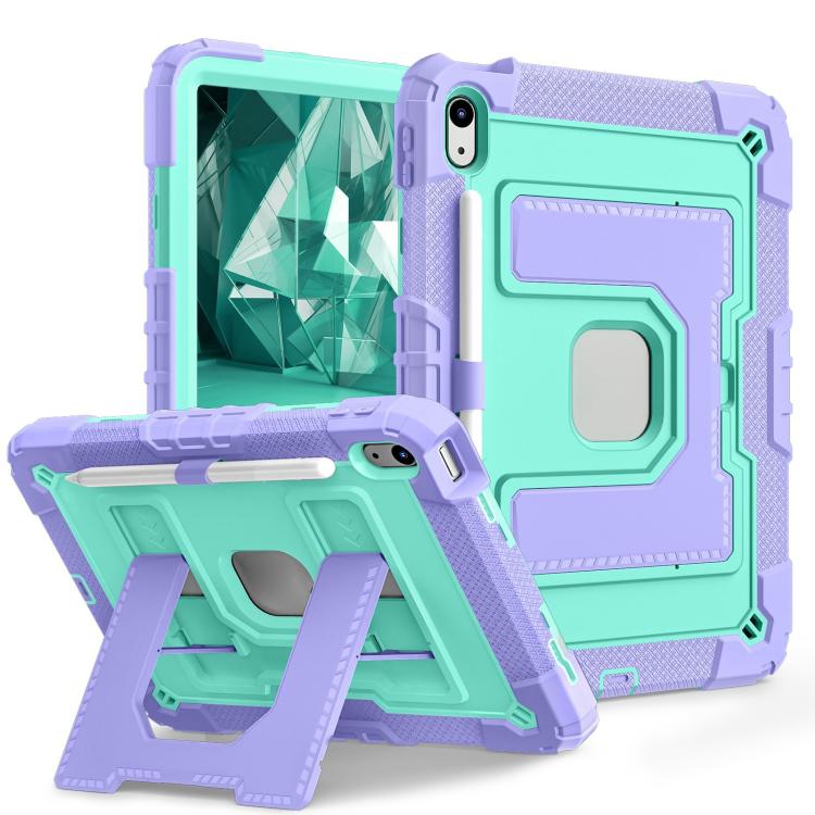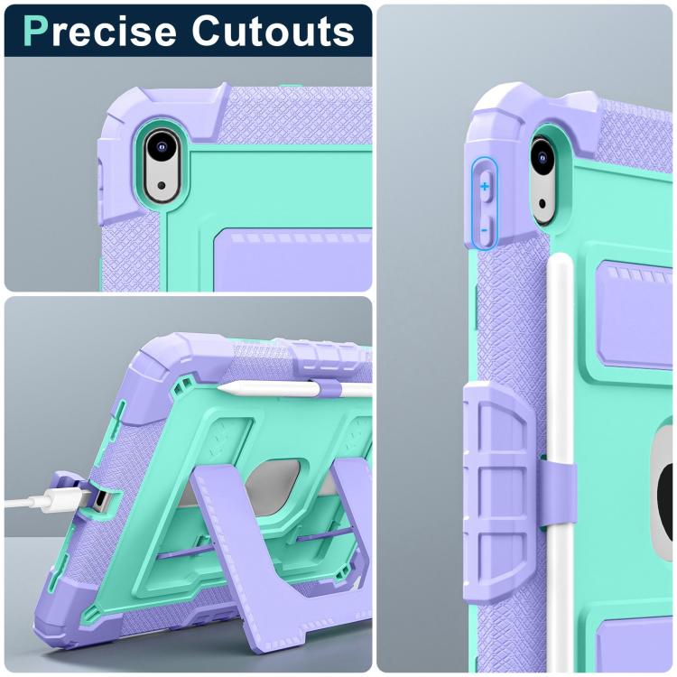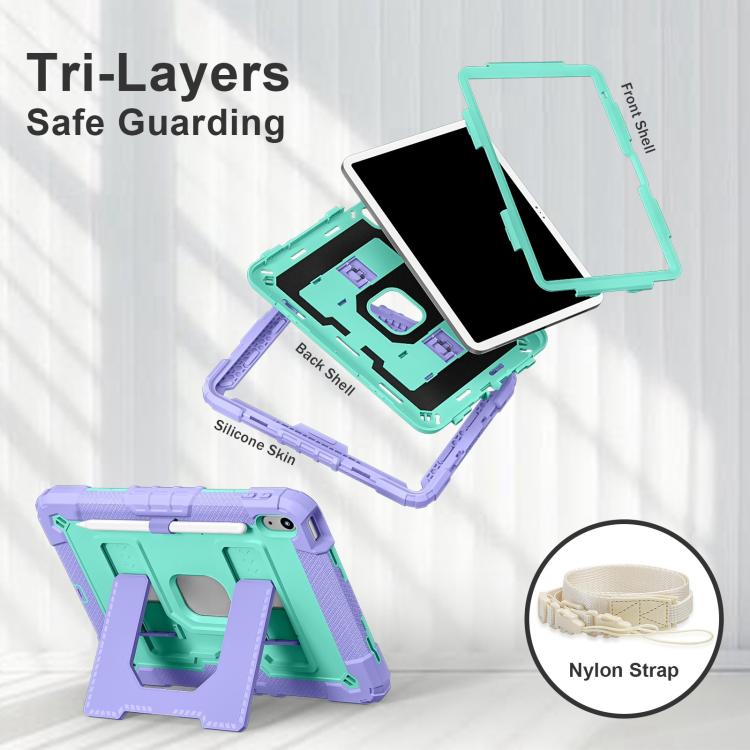 For iPad 2025 / 2022 Big Holder Silicone Hydric PC Tablet Case with Shoulder Strap(Purple Mint)