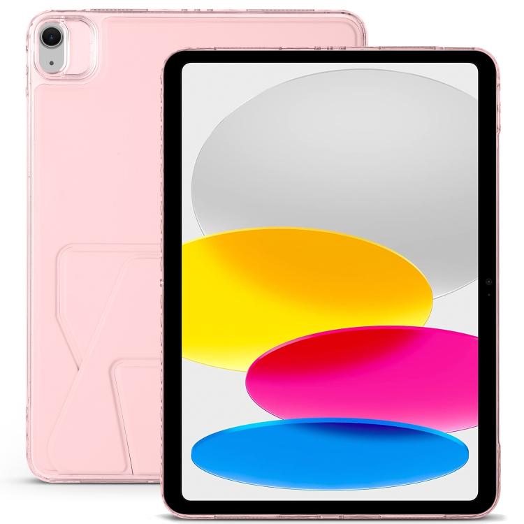 For iPad 2025 / 2022 Folding Magnetic Holder Acrylic Leather Back Tablet Case(Pink)