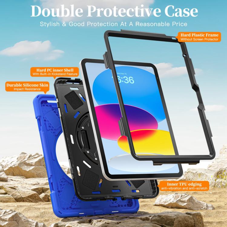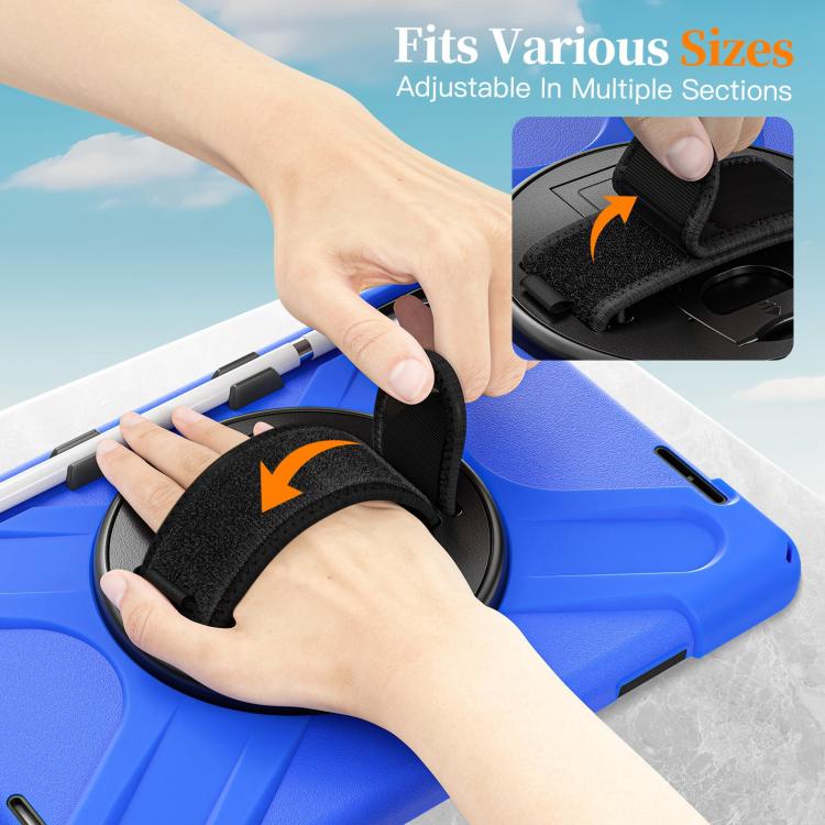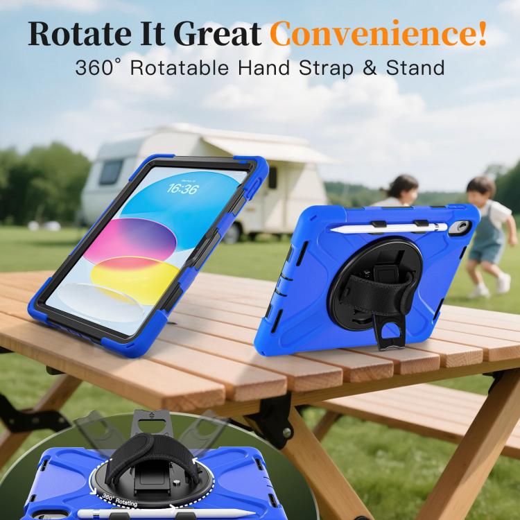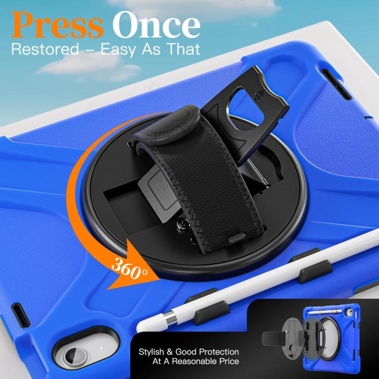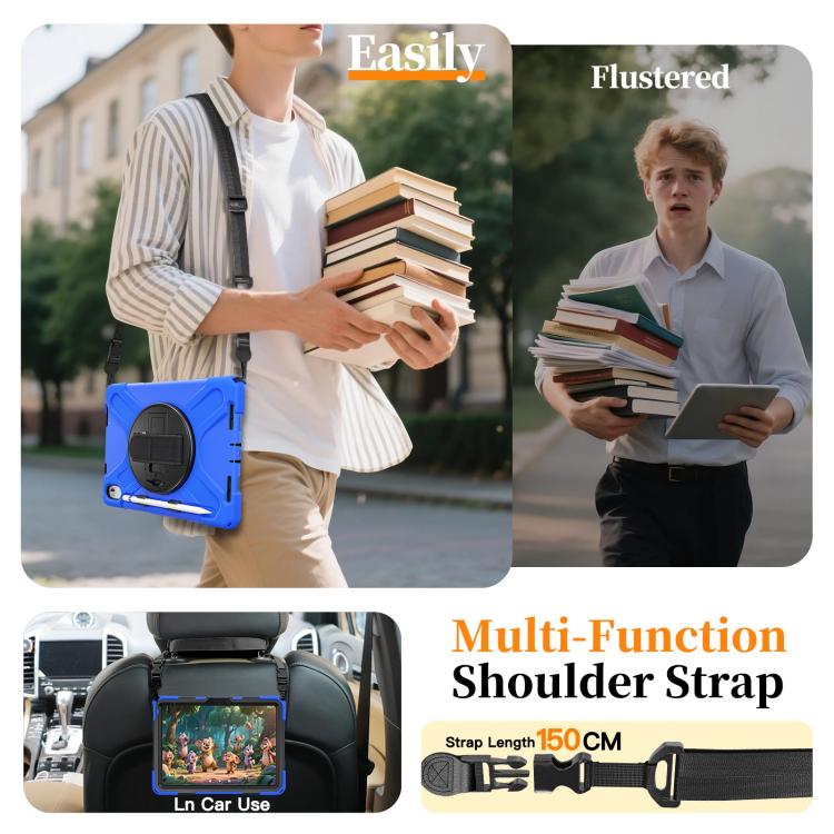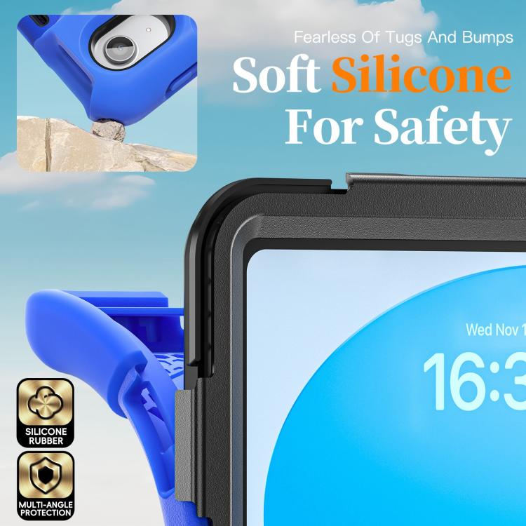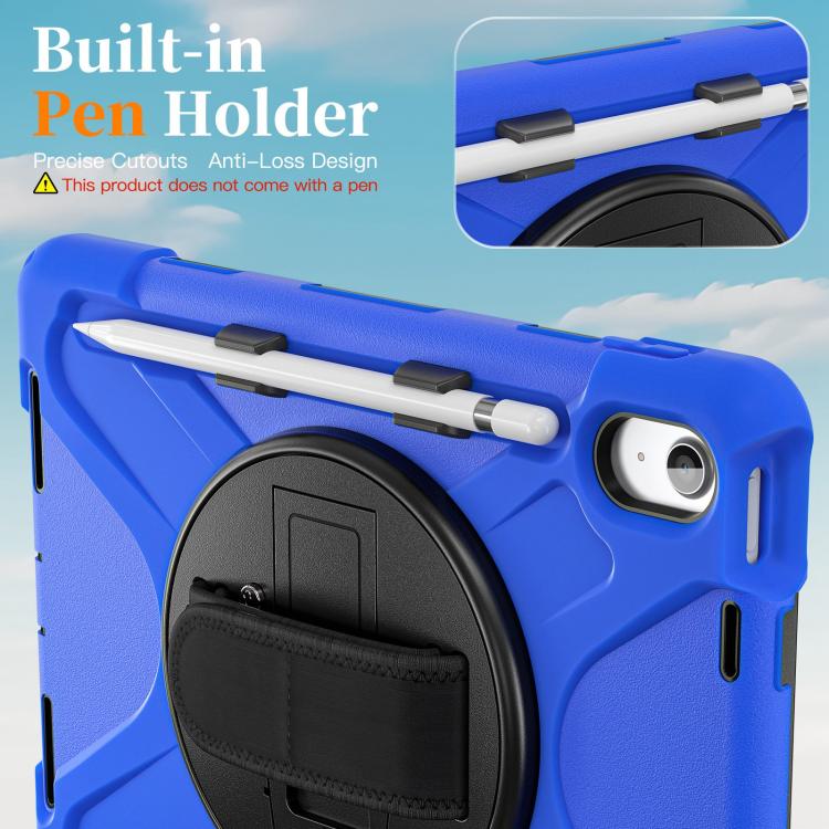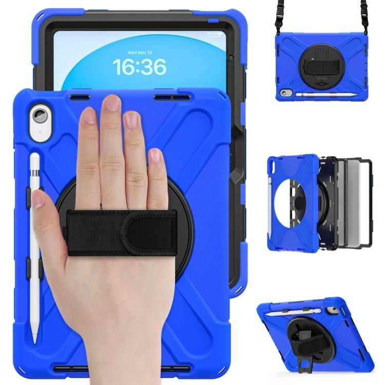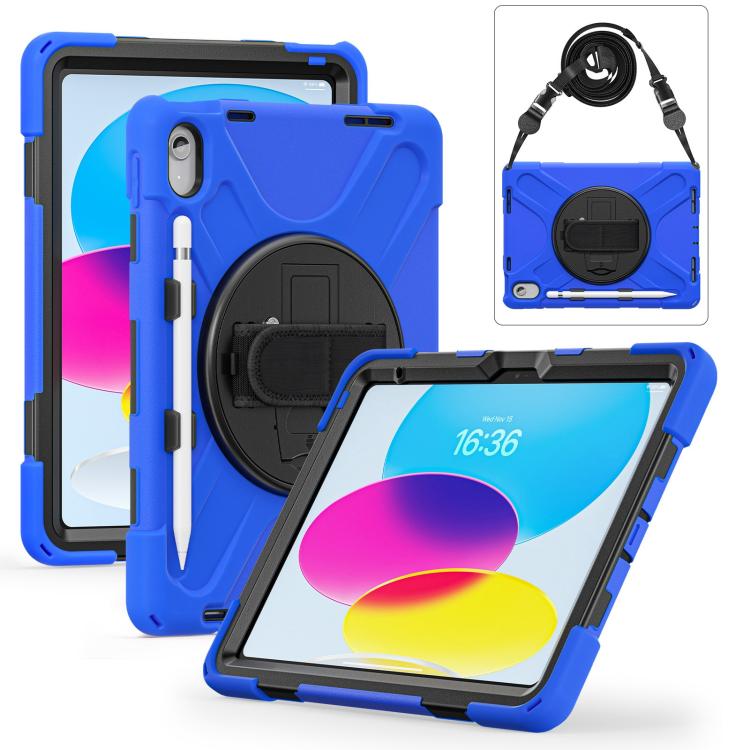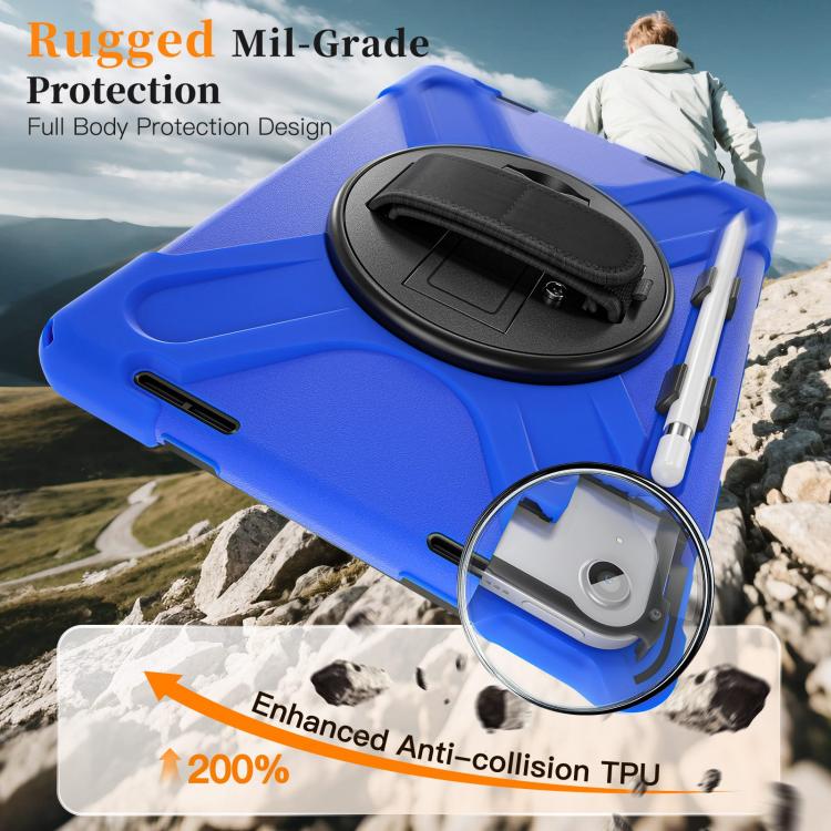 For iPad 2025 / 2022 Rotatable Holder Silicone Hybrid PC Tablet Case with Shoulder Strap & Pen Slot(Blue)