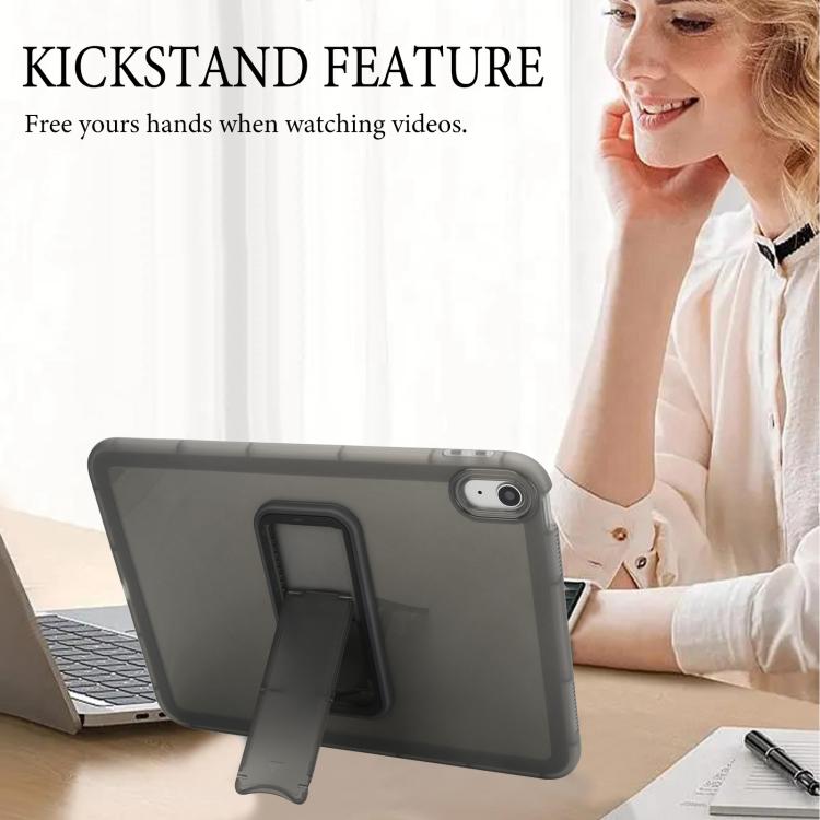 For iPad 2025 / 2022 Semi-Transparent TPU Shockproof Tablet Case with Holder(Black)