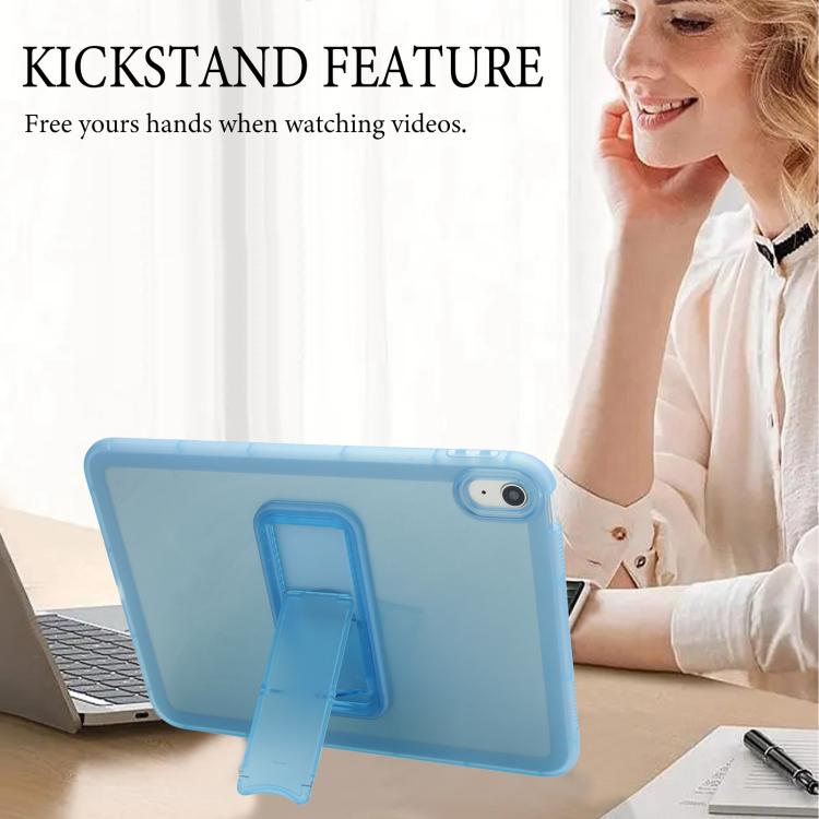 For iPad 2025 / 2022 Semi-Transparent TPU Shockproof Tablet Case with Holder(Blue)