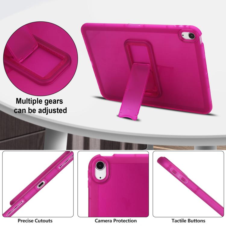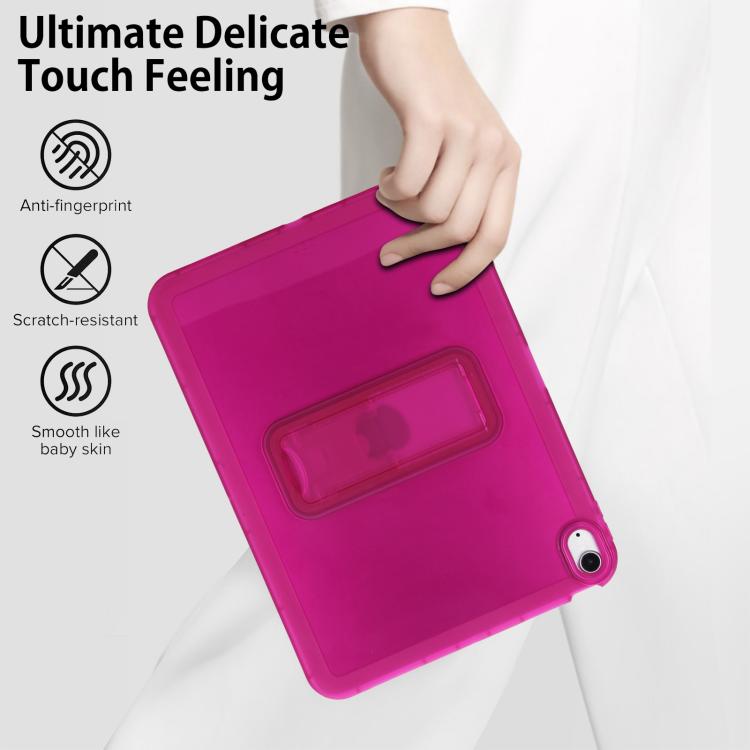 For iPad Air 10.9 2022 / 2020 / Pro 11 2018 Semi-Transparent TPU Shockproof Tablet Case with Holder(Rose Red)