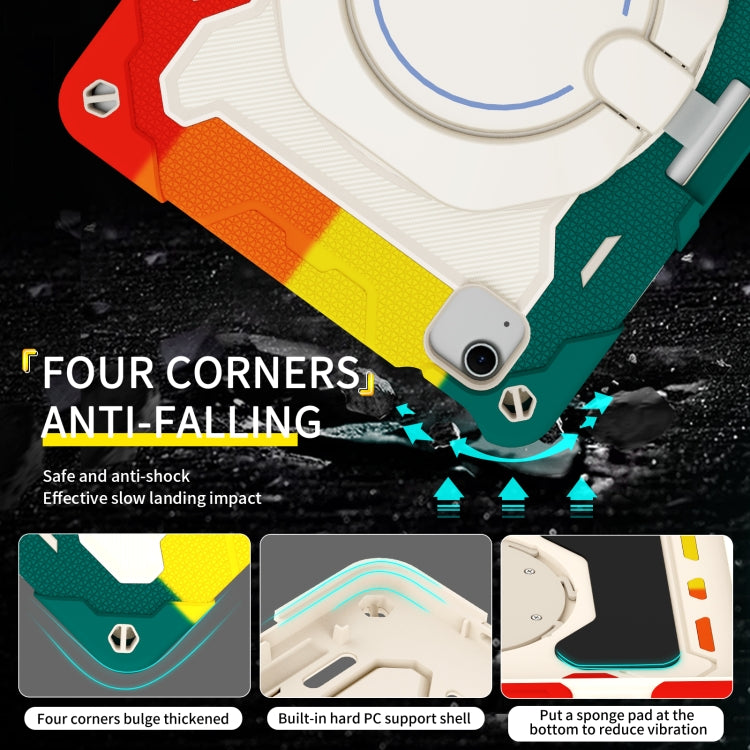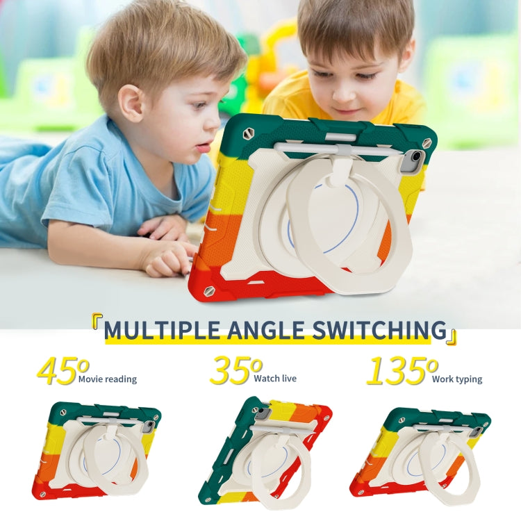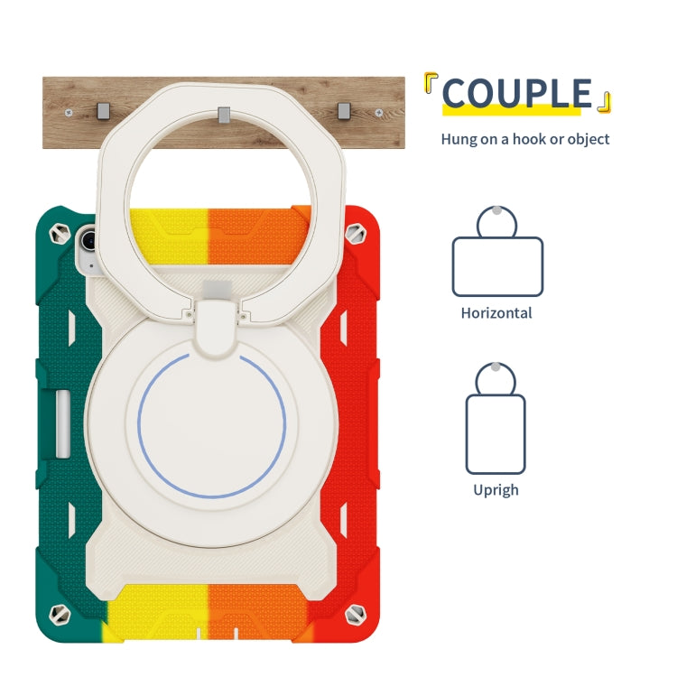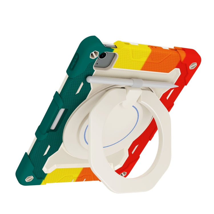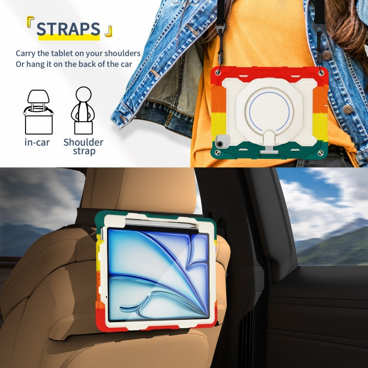 For iPad Air 11 2024 / 2025 Armor Portable Rotating Ring Holder Silicone Tablet Case with Pen Slot(Colorful Red)