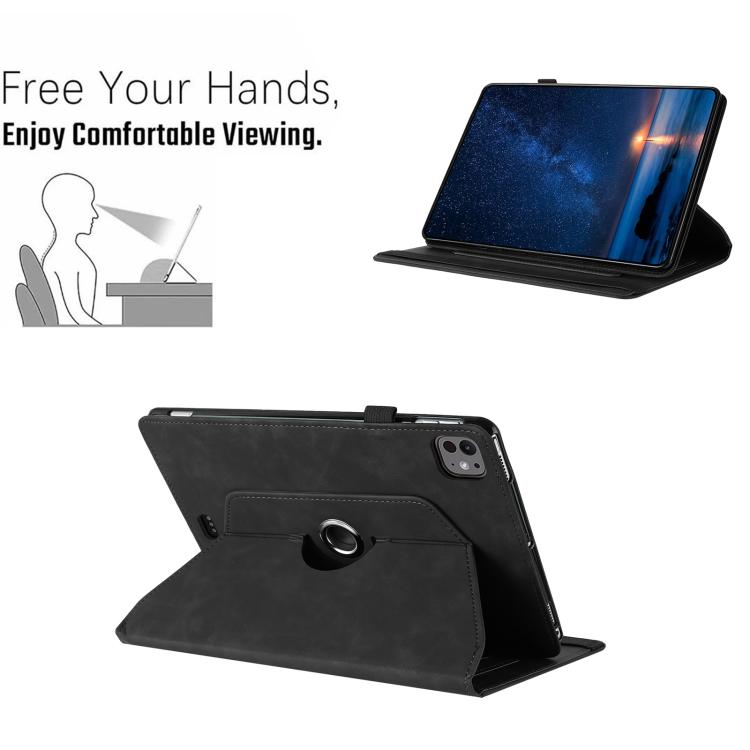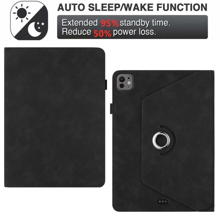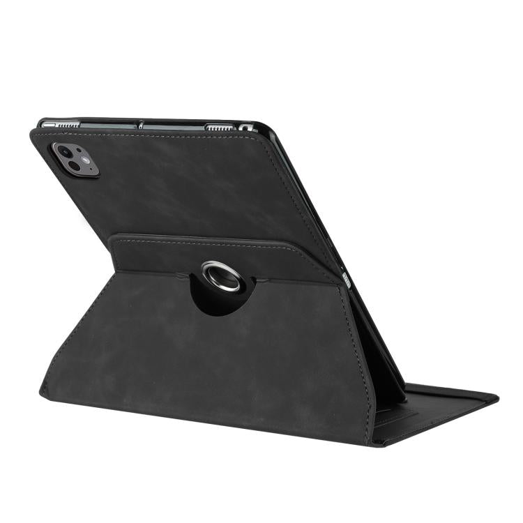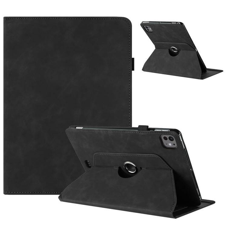 For iPad Air 11 2024 / 2025 Solid Color Rotation Holder Leather Smart Tablet Case(Black)