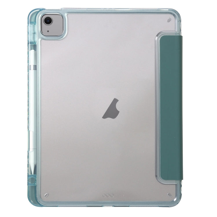 For iPad Air 11 2025 / 2024 Clear Acrylic 3-Fold Leather Tablet Case(Dark Green)