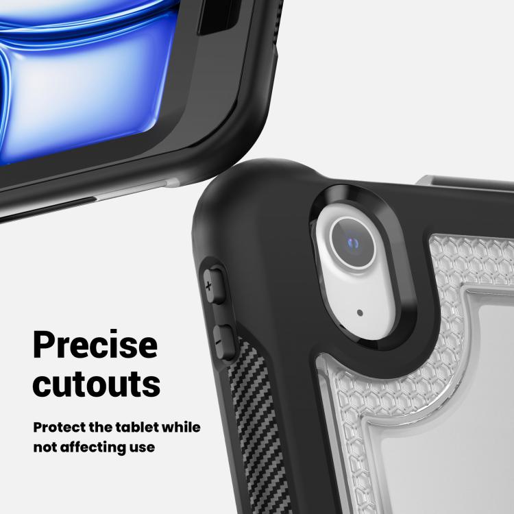 For iPad Air 11 2025 / 2024 Honeycomb Hybrid Tablet Case with Handle Holder & Strap(Transparent)
