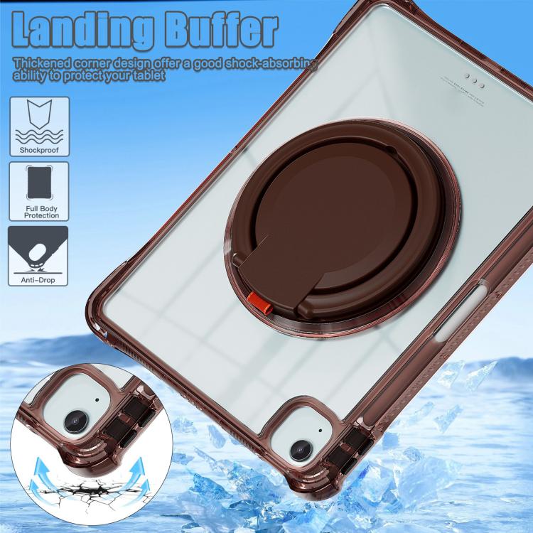 For iPad Air 11 2025 / 2024 / Pro 11 2022 Rotation Ring Handle TPU Hybrid Clear PC Tablet Case(Chocolate)