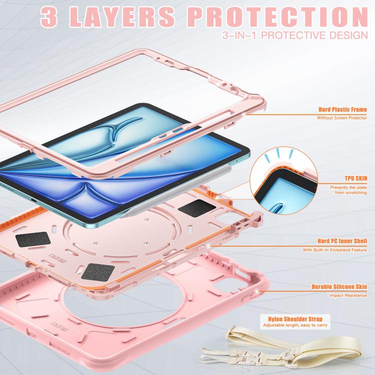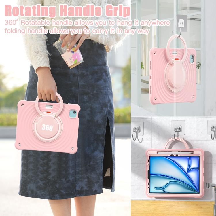 For iPad Air 11 2025 / 2024 Rotation Handle Holder Silicone Hybrid PC Tablet Case(Pink)