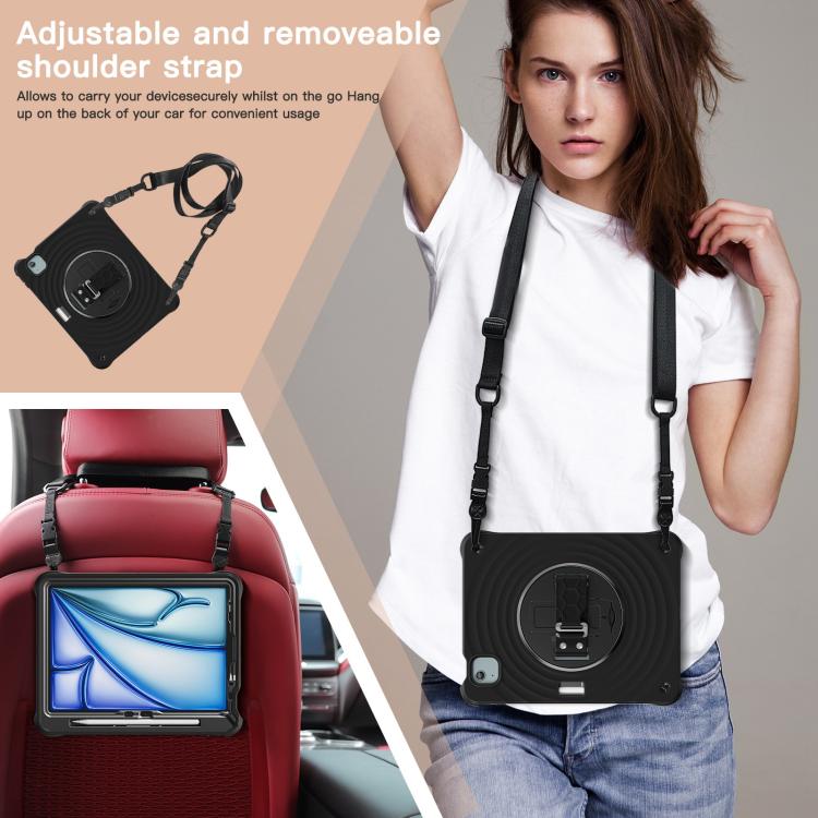 For iPad Air 11 2025 / 2024 Rotation Holder Silicone Hybrid PC Tablet Case(Black)