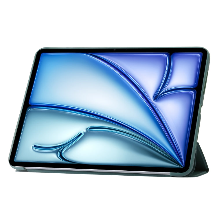 For iPad Air 11 2025 / 2024 Three-fold Holder Flip Tablet Leather Case(Dark Green)
